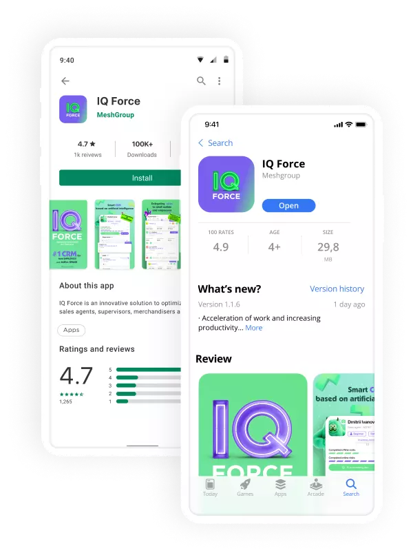 IQ Force allows you to digitize the daily tasks of sales agents, increasing their work capacity by 10 times and reducing the companys time and transport costs by a third.