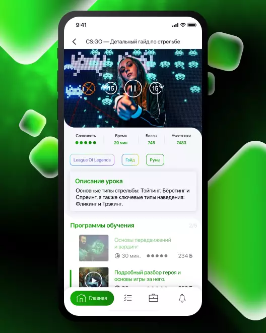 IQ Game — это единая экосистема, интегрирующаяся с соц. сетями и игровыми платформами (STEAM, FACEIT, FASTCUP) и предоставляющая тысячи различных вариантов обучения для проработки слабых мест игрока. Участники могут самостоятельно загружать контент на площадку, продавая авторские курсы и монетизируя свои знания и навыки, а также зарабатывать на продаже индивидуальных тренировок и менторстве для начинающих игроков.