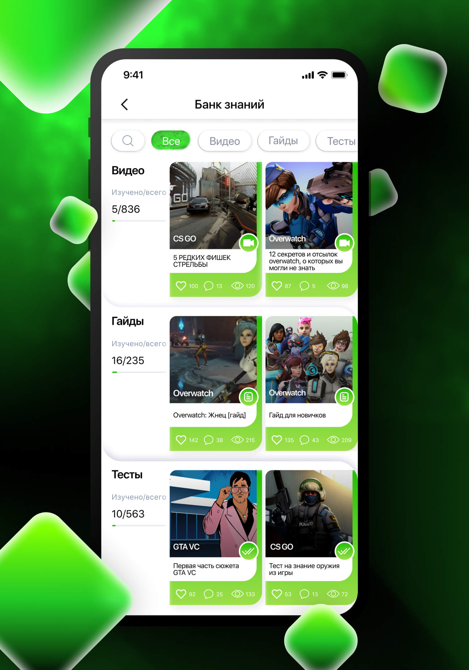 IQ Game предоставляет доступ к крупнейшей базе обучающих материалов лучших из лучших команд и тщательно подобранных тренировок по самым востребованным играм в различных жанрах (CS:GO, Dota 2, Fortnite и т. д.). Отфильтрованный контент от топовых игроков, лучшие лайфхаки и пошаговый разбор наиболее масштабных боёв делают процесс обучения структурированным и максимально простым. База топового контента постоянно обновляется, позволяя студентам IQ Game непрерывно расти. Участники получают возможность пополнять базу знаний видеозаписями своих боёв и разборами игровых моментов, монетизируя просмотры и продавая свои знания и опыт.