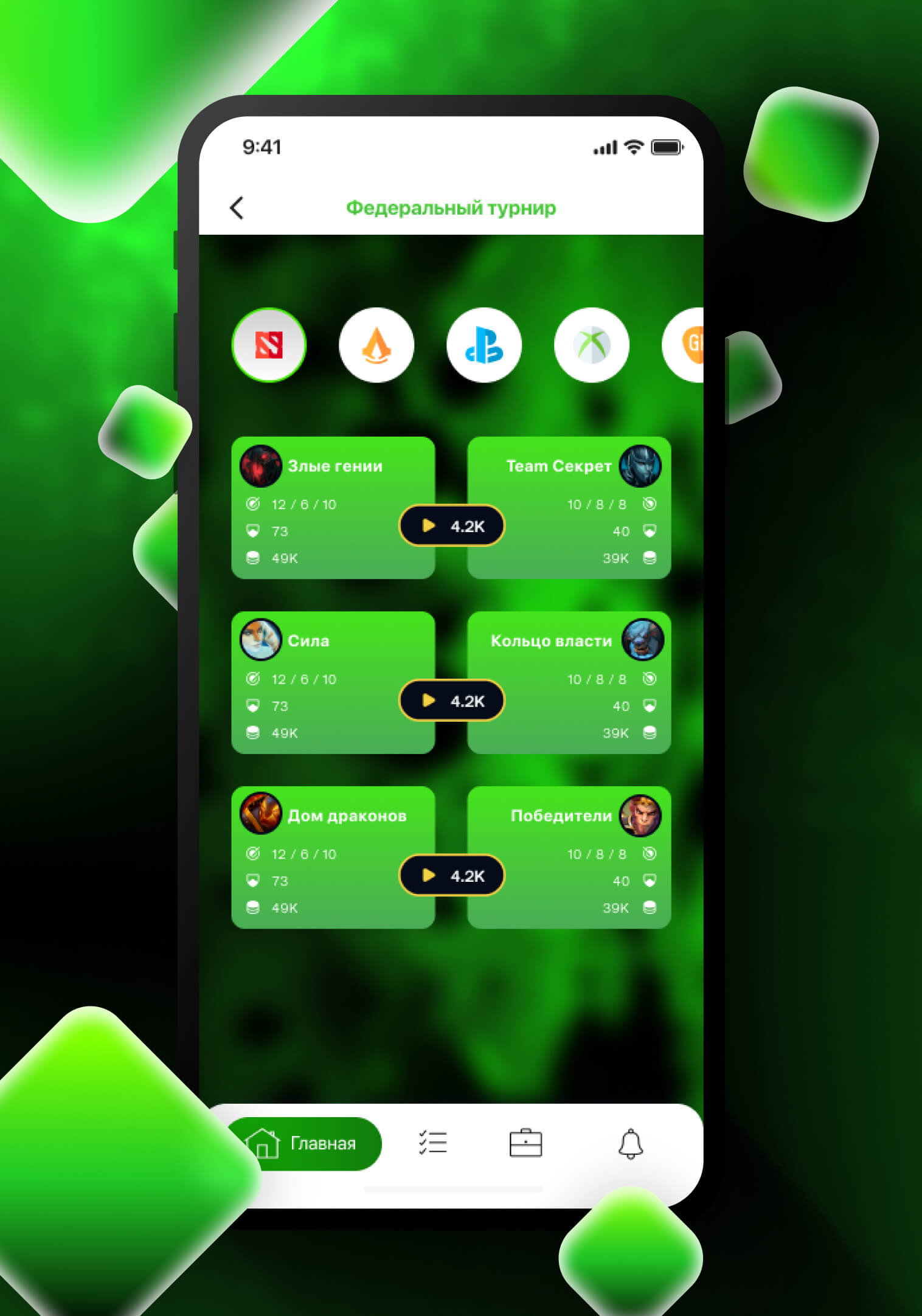 Организация любительских и профессиональных турниров на площадке для всех желающих, а также федеральные чемпионаты по киберспорту