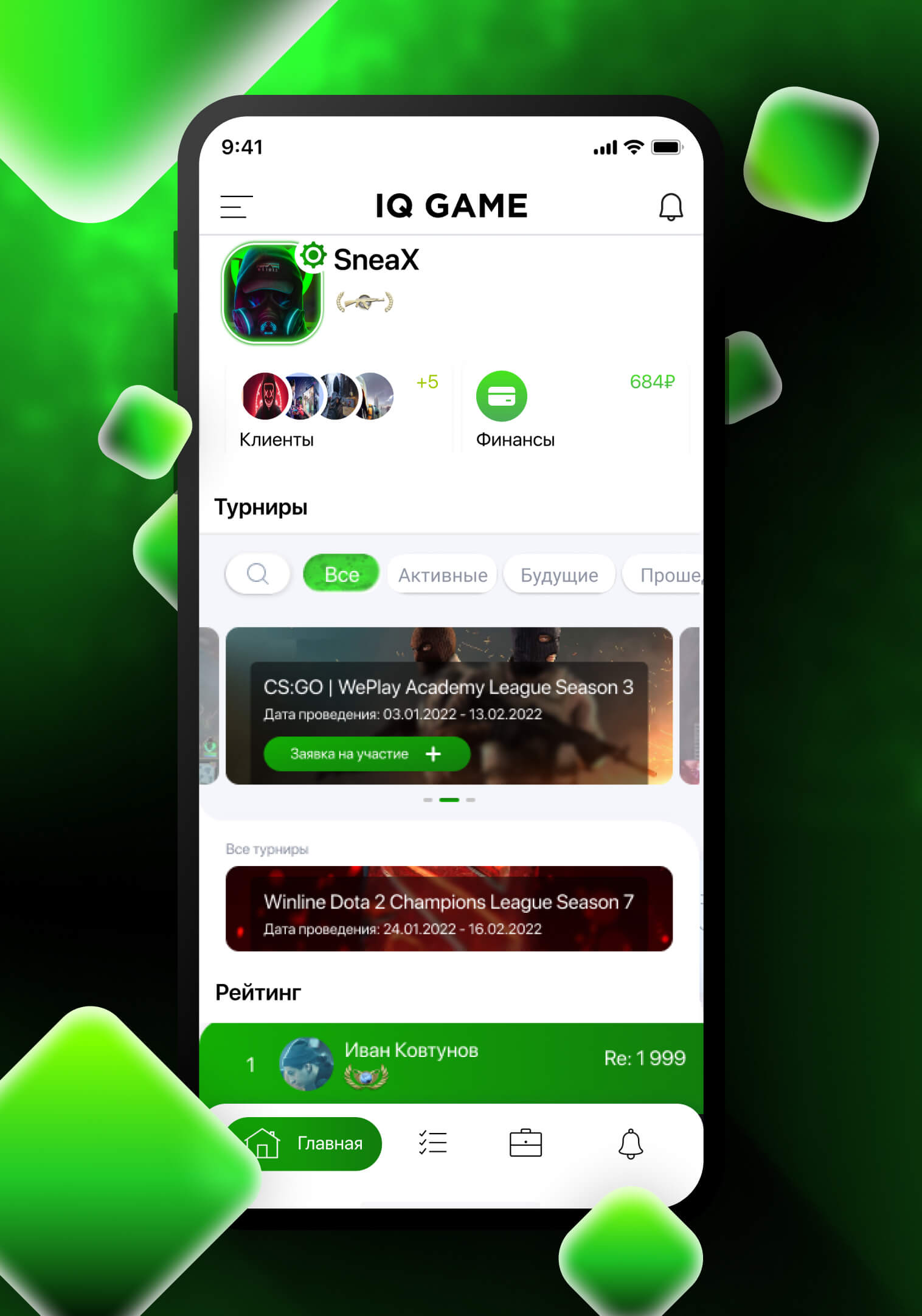 На базе IQ Game любой желающий может принять участие как в существующем турнире, так и организовать собственное соревнование. Достаточно лишь выбрать интересующую игру, обозначить свой уровень и желаемый стартовый взнос. Система самостоятельно подберёт подходящих соперников, сформирует турнирную сетку и рассчитает призовой фонд. Команда опытных модераторов и продвинутая защита от читов позволят насладиться сражениями и честной игрой с достойными соперниками. Турниры на площадке IQ Game подходят как для частных участников, так и для корпоративных: организация соревнований среди отделов компании и повышение командного духа сотрудников путём продвинутой геймификации.