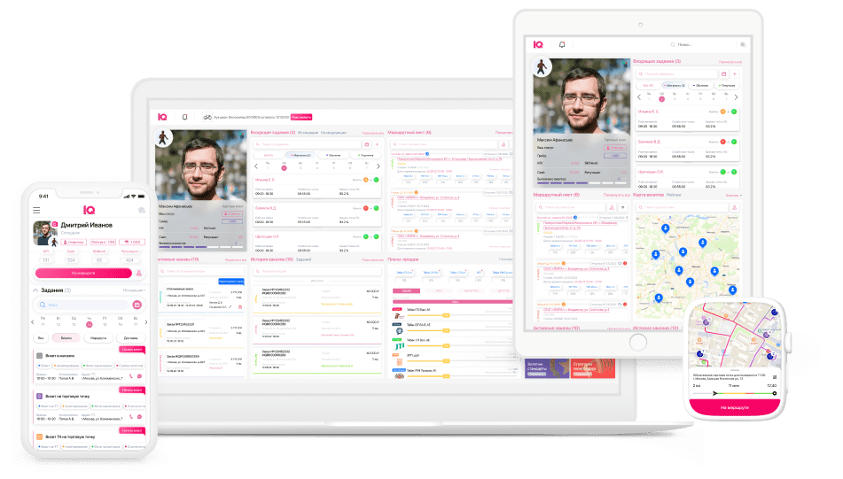 Коробочное решение IQ Geo Tracking устанавливается сотрудникам: курьерам, водителям и другим выездным сотрудникам — подключаются модули в соответствии с ролью и задачами сотрудника. Платформа интегрируется с существующей или нашей собственной CRM, а также может работать автономно.