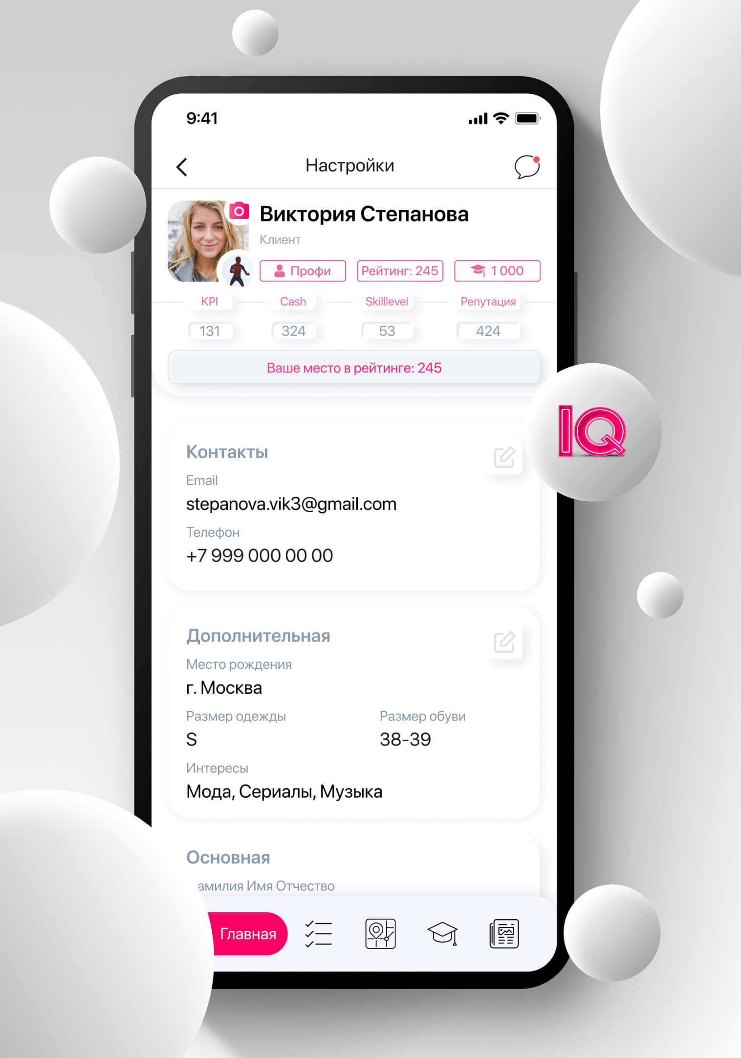 • Основная информация: фамилия, имя, отчество, дата рождения, пол, почта, компания