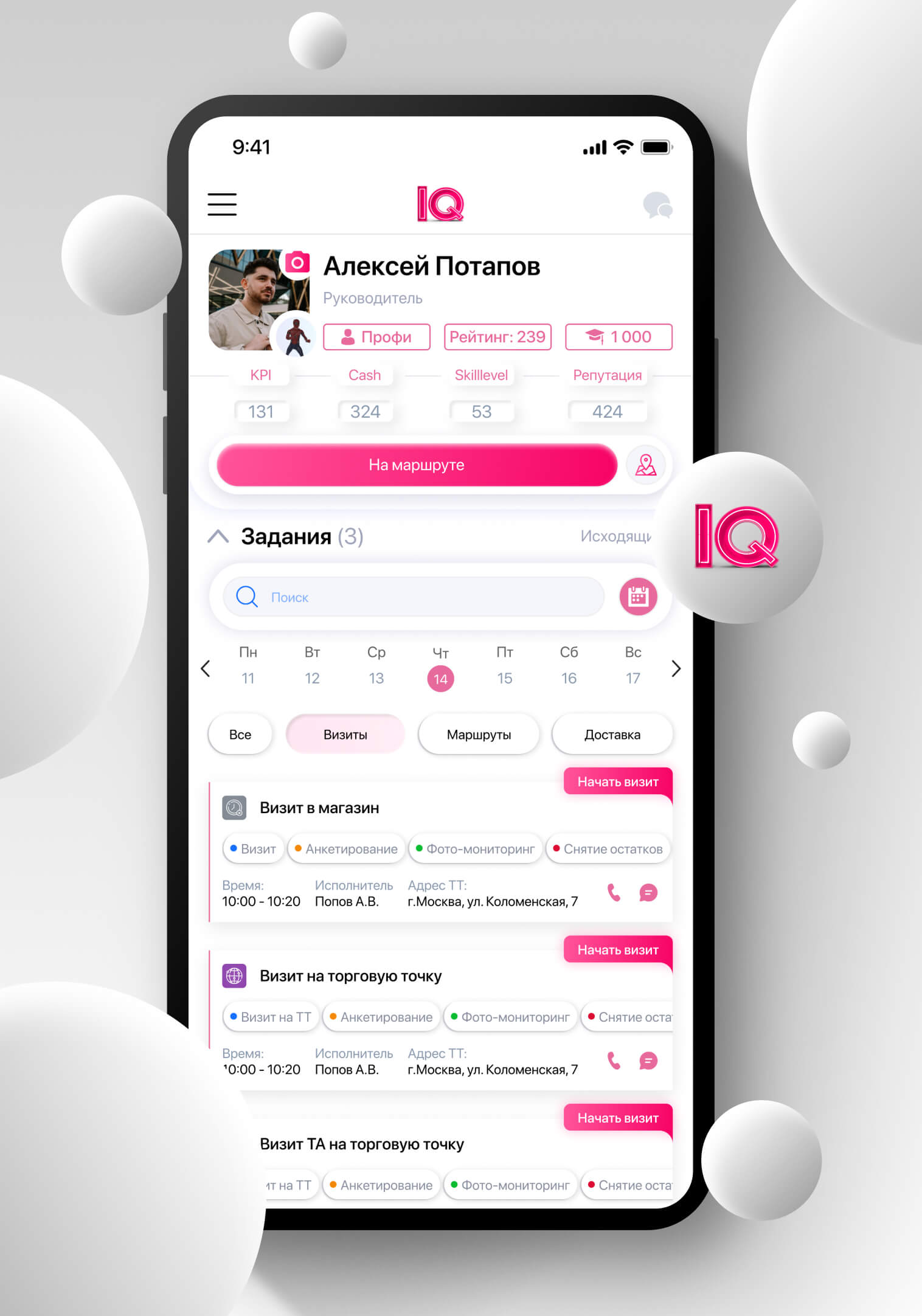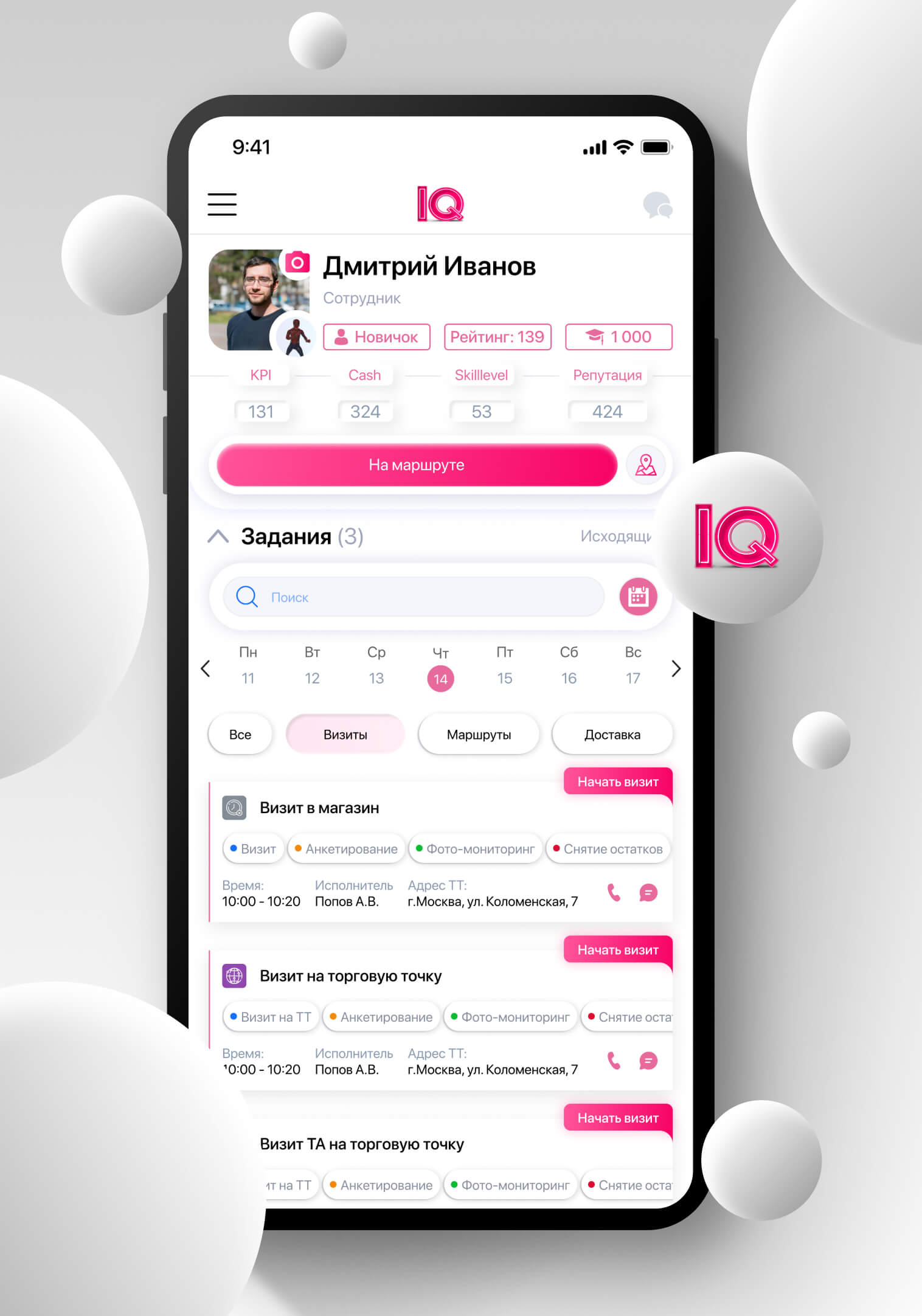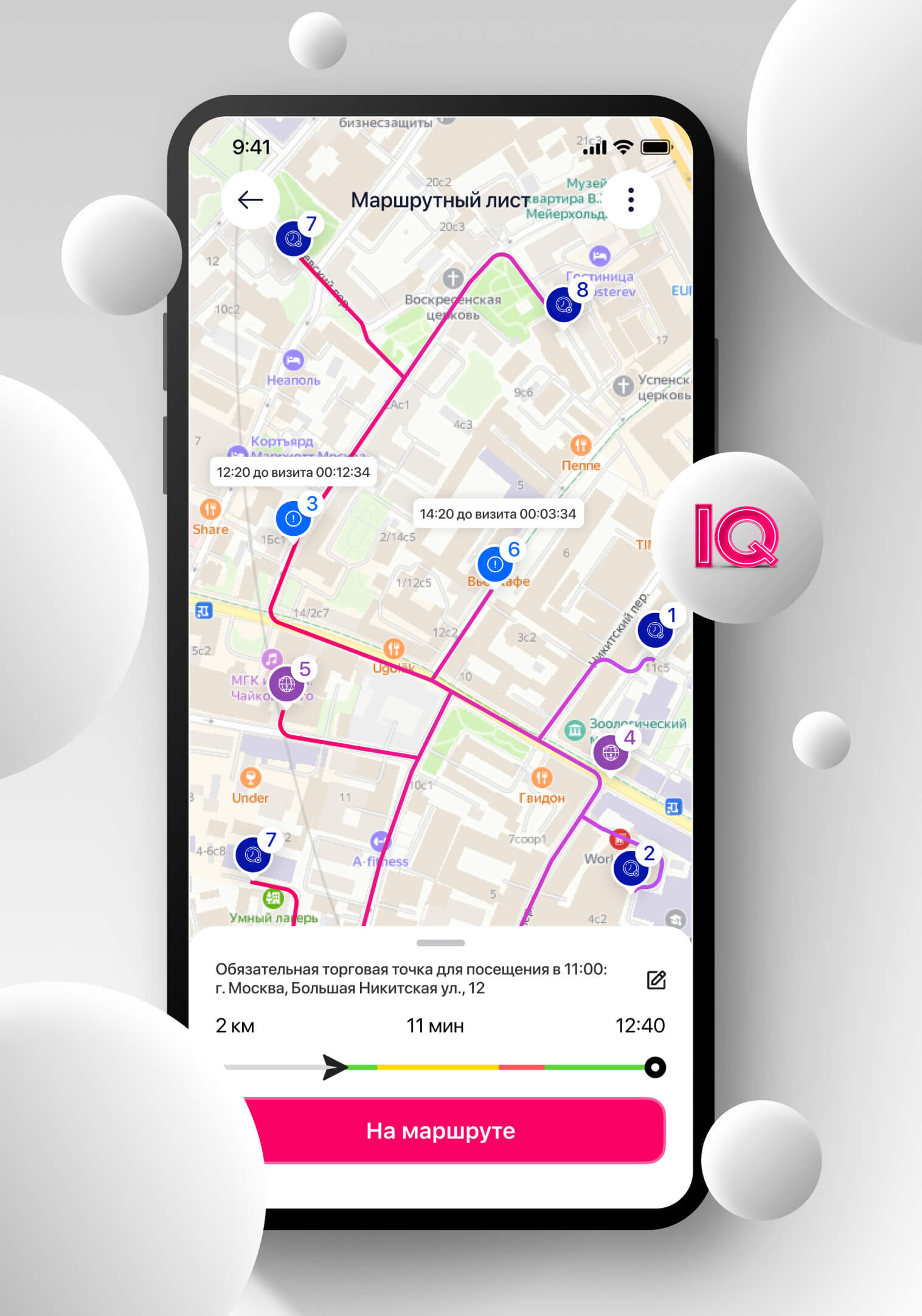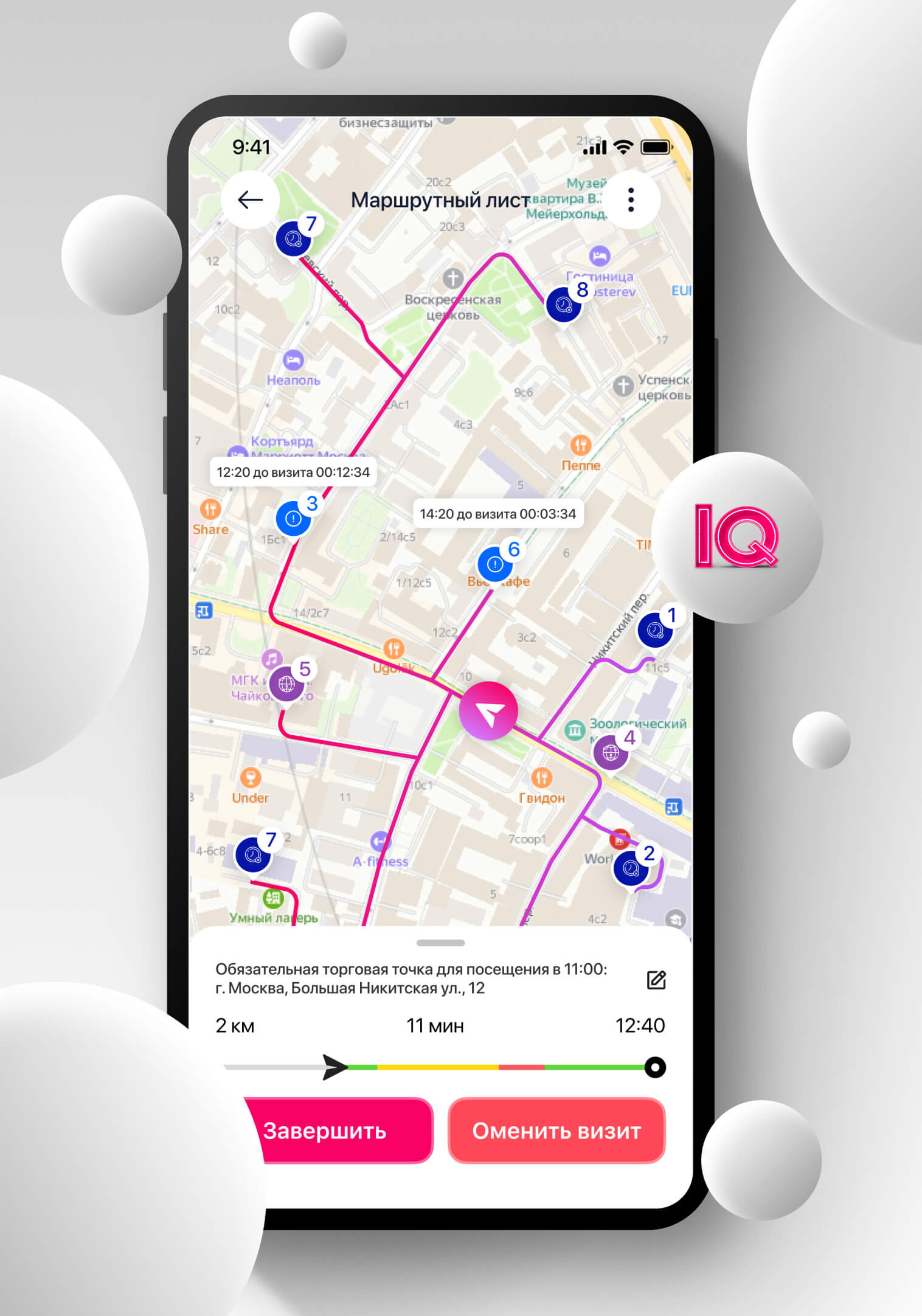 Модуль позволяет контролировать и приводить к единым стандартам работу сотрудников, совершающих перемещения в течение дня. IQ Geo Tracking зафиксирует приход сотрудника в необходимую локацию, автоматически подсчитает длительность каждого визита, предложит заполнить чек-листы по необходимому набору действий на объекте, а также отобразит на карте передвижения сотрудника в течение дня.