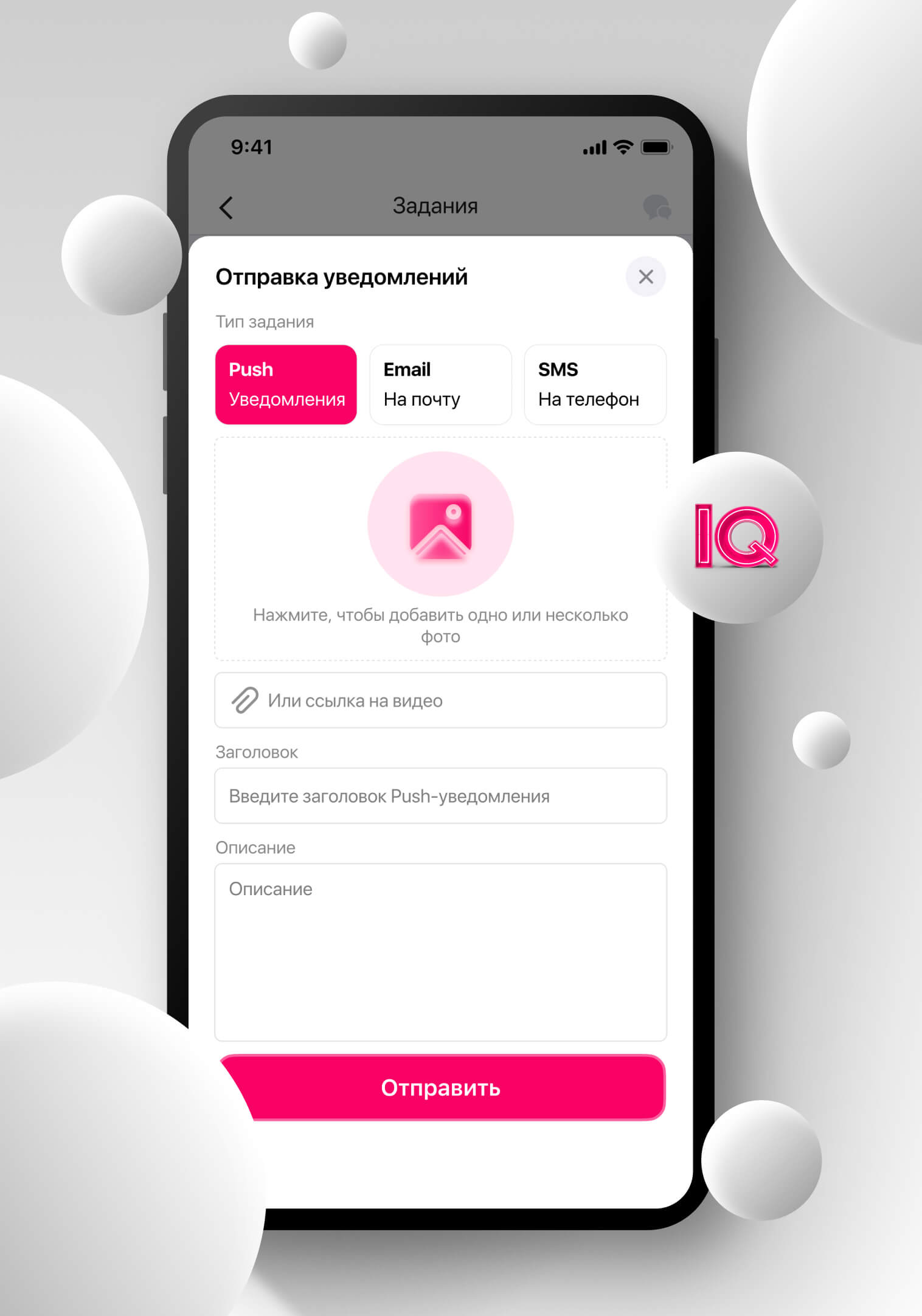 • Гибкая настройка push-уведомлений по любым бизнес процессам