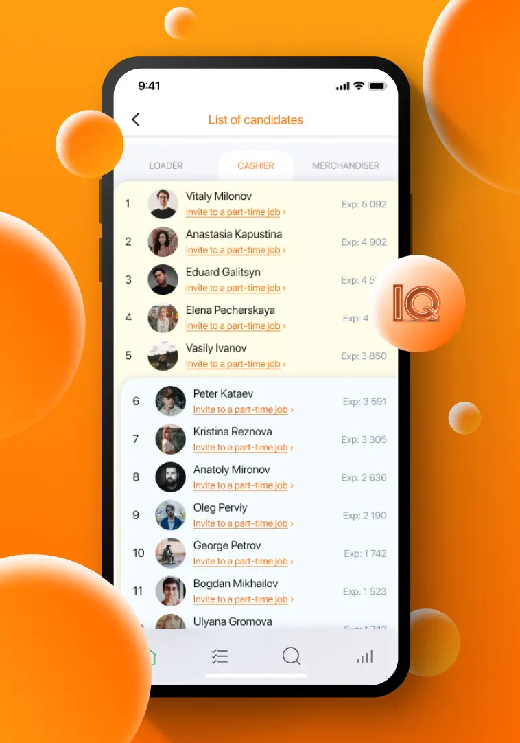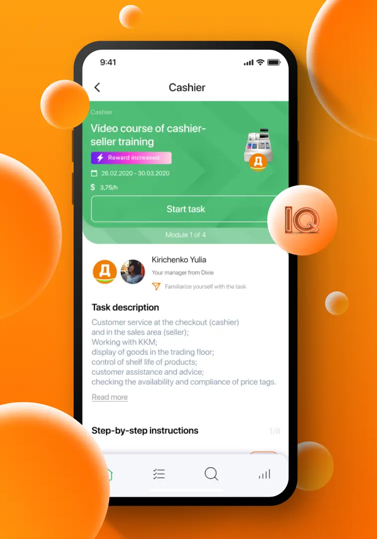 Before going to work, future performers learn about the requirements of the company, get acquainted with its values, undergo initial express training and auto-testing for selected tasks on the IQ JOB platform, discovering the list of available part-time jobs. Thus, already trained employees are responding to applications, ready to immediately start working.