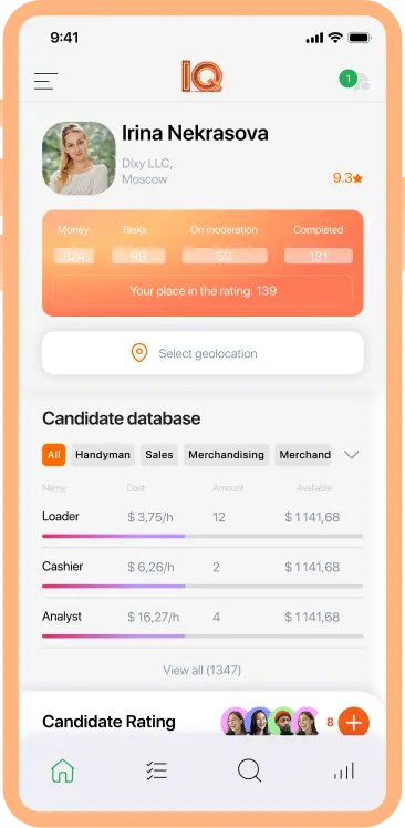 The platform allows you to reduce the permanent staff by analyzing the daily load and attracting the required number of line employees only during peak hours. Preliminary training in IQ JOB and careful filtering of candidates guarantees a quick selection of ready-made qualified performers to solve specific tasks.