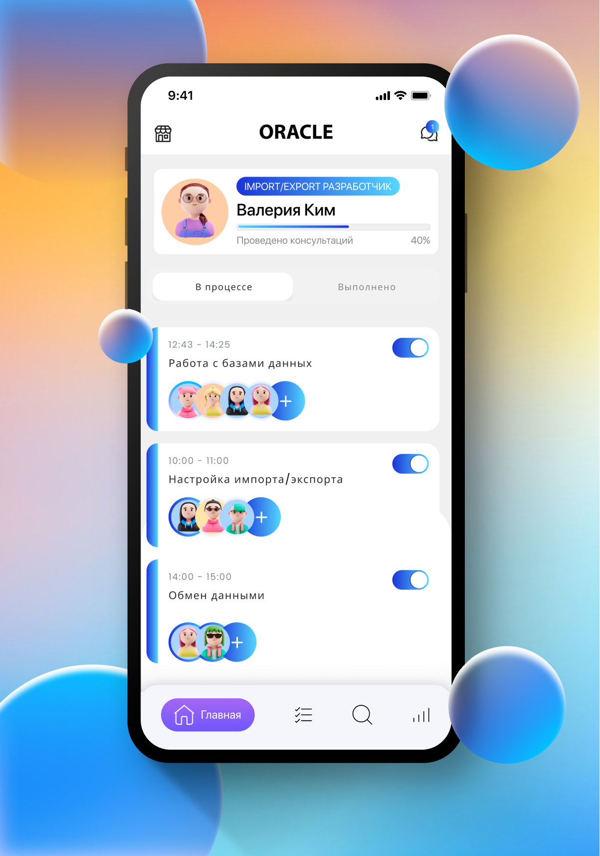 1. Настройка импорта/экспорта и сбора данных от Oracle в режиме реального времени и преобразование их в упрощенный формат, а также сохранение в таблицах базы данных.