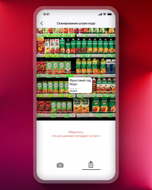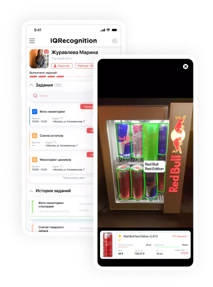Target SKUs are recognized in the photo/video in real time and information is displayed for further actions (depending on the type of task).