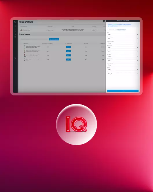 IQ Recognition is a modern module for data recognition in any format based on computer vision and machine hearing (Image Recognition, Voice Recognition and Video Recognition) and can be flexibly adjusted to the current needs of your business processes.